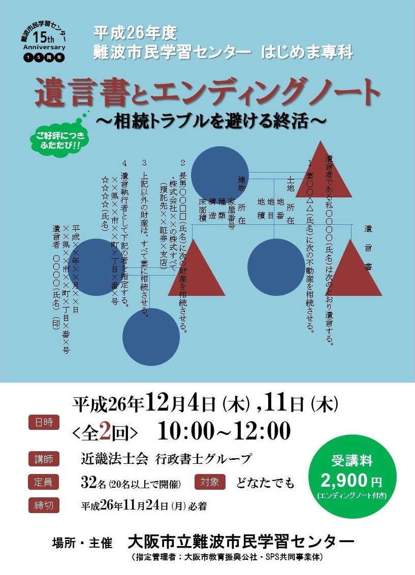 申し込み、問い合わせは「なんば市民学習センター」にお願いします。